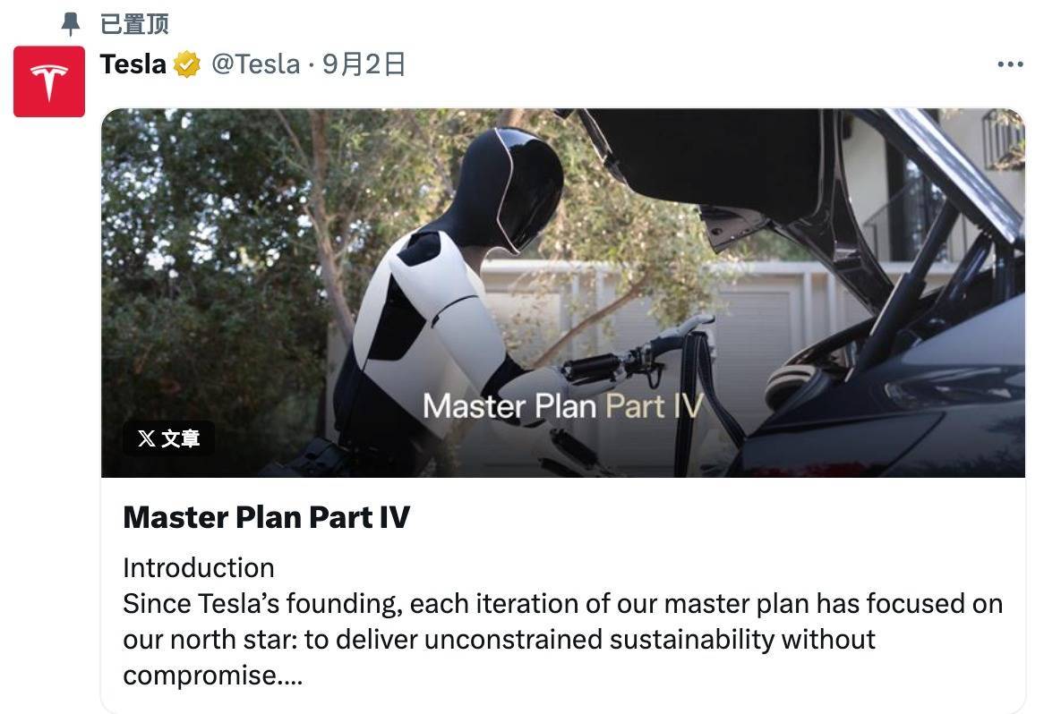 第四篇章全文仅983个字,是其改日贪图“高明宏图”系列中最短的一篇。该方向初次发表在埃隆·马斯克(Elon Musk)的酬酢媒体平台X上,而非特斯拉官网。