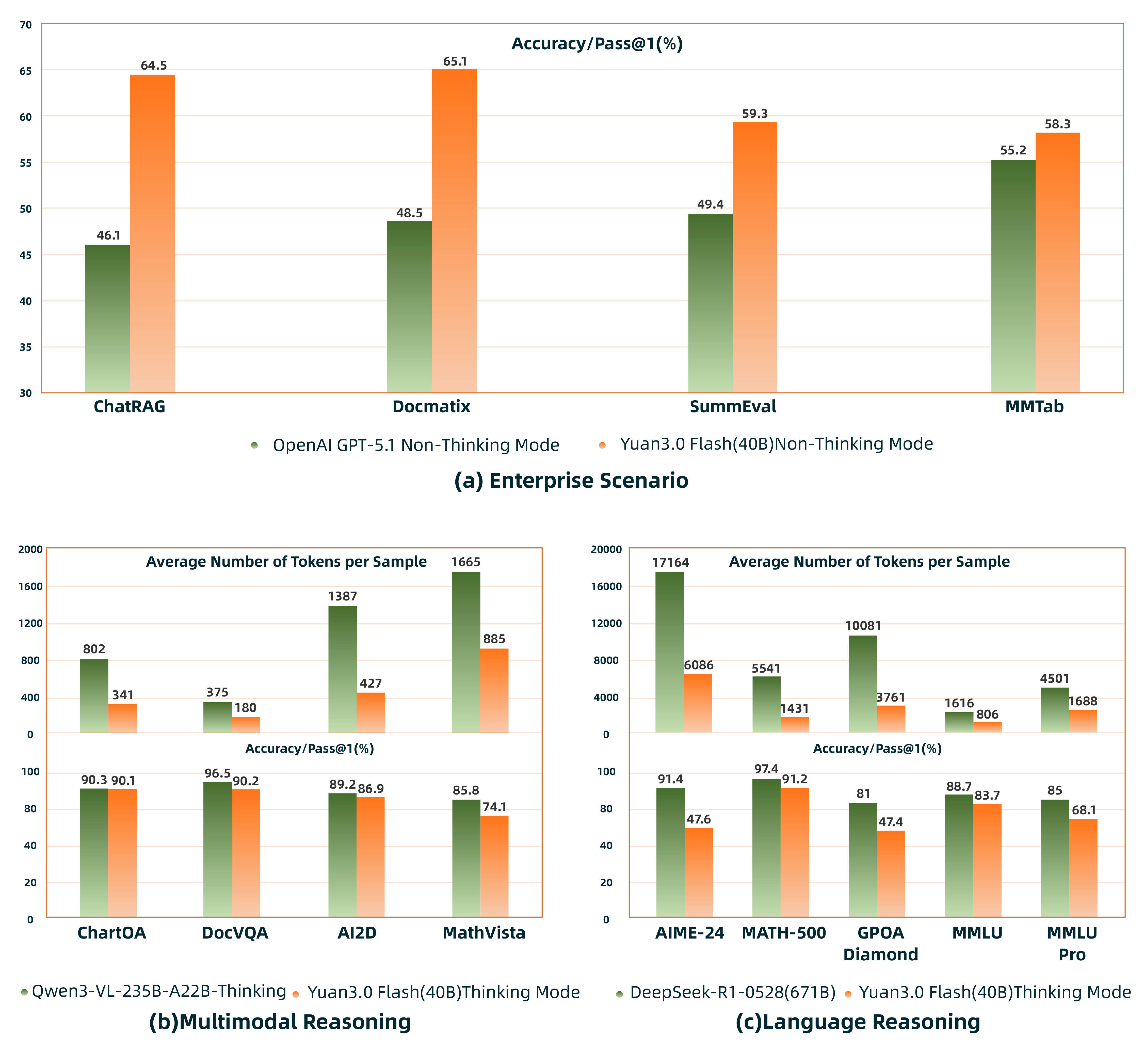 图2:Yuan3.0 Flash在企业级、多模态和话语模态上的基准测试阐扬