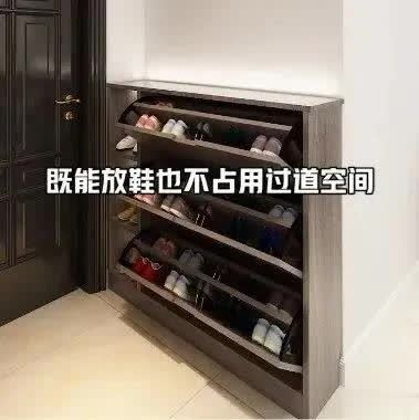 老例鞋柜太占空间?选超薄翻斗柜(深度仅16cm),贴墙装配透澈不影响通行,柜门翻下来就能放鞋,关上后平整如墙,不会磕磕碰碰。