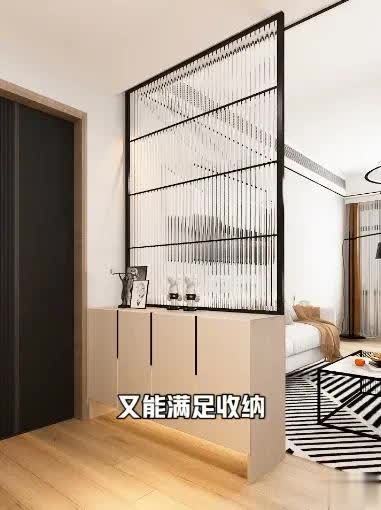 鞋柜外侧拼接长虹玻璃阻塞(高度1.8m),既能遮挡客餐厅视野,保护诡秘,又不会让空间显得压抑(长虹玻璃的纹理还能增多缠绵感)。阻塞另一侧蔓延作念餐边柜,放餐具、零食,造成“入户-餐厅”的当然过渡,空间讹诈坦直接拉满。