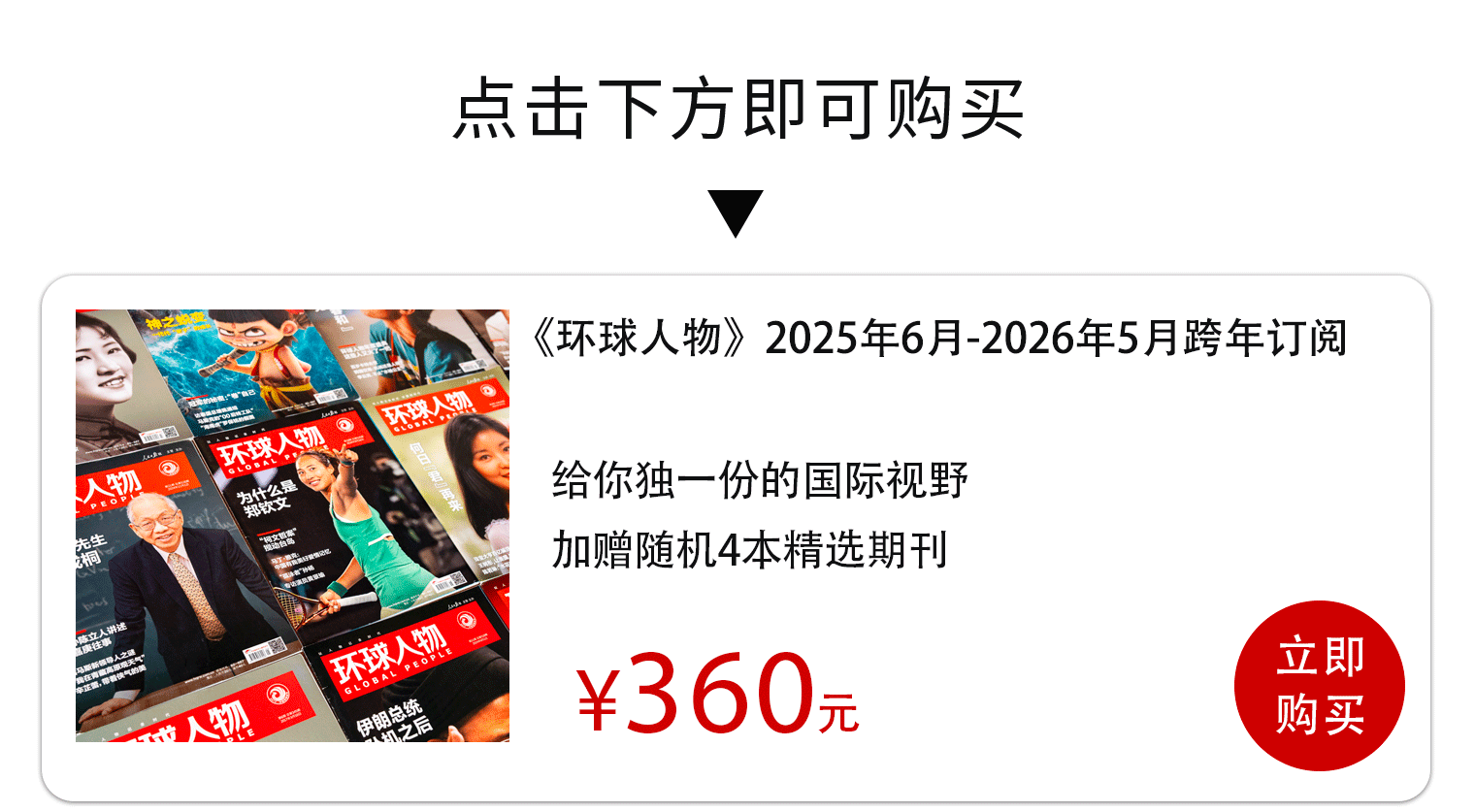 订阅《环球东说念主物》是想想盛宴,全年 48 期悉心打磨,装帧紧密,视觉呈现私有。