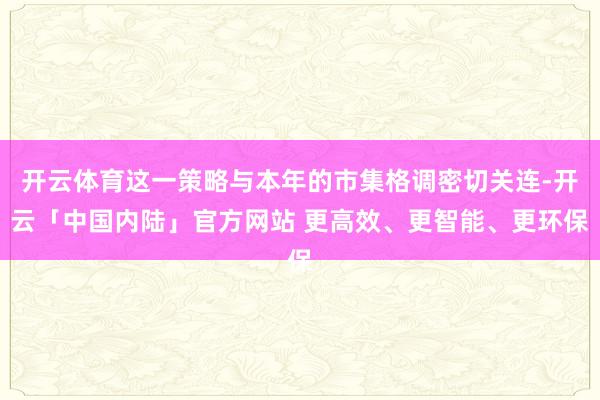 开云体育这一策略与本年的市集格调密切关连-开云「中国内陆」官方网站 更高效、更智能、更环保